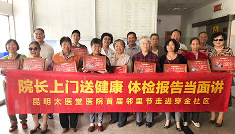 为老年人免费体检,是昆明太医堂医院首届邻里节的主要环节,同时通过医务人员的真诚零距离服务,促进了这样的惠民活动得到更好的实施。